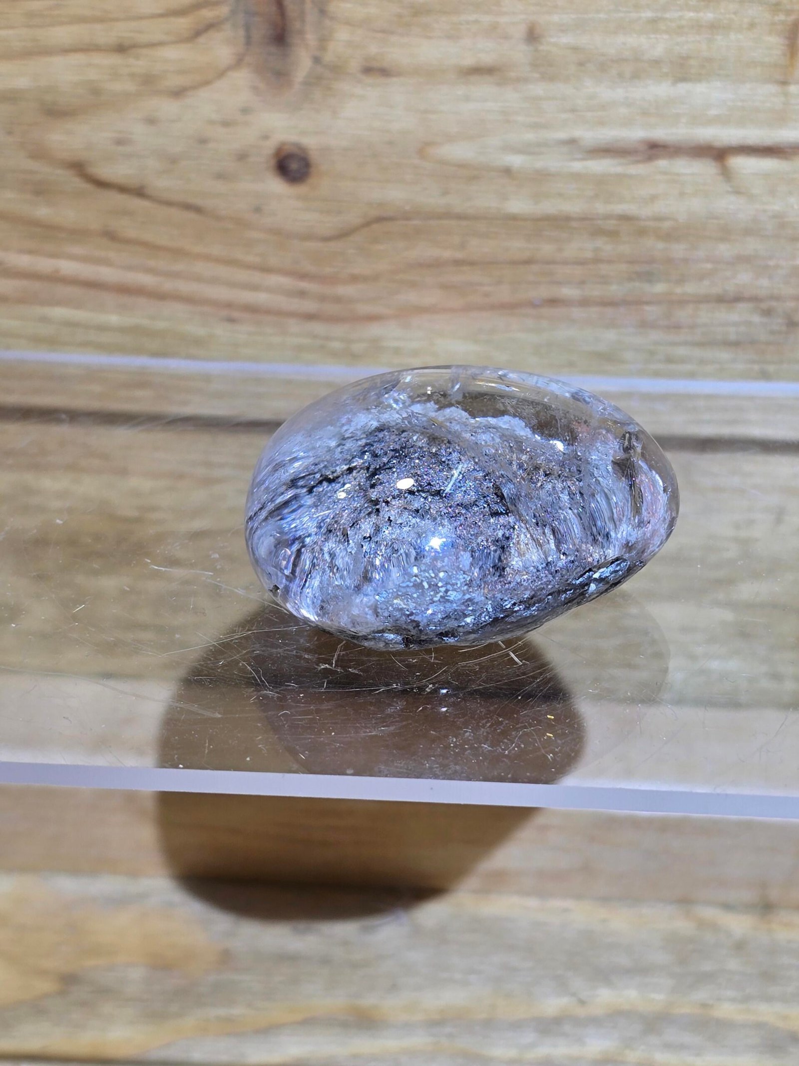 Es cuarzo (SiO₂) que contiene inclusiones minerales visibles , formadas durante distintas etapas de crecimiento del cristal. Estas inclusiones quedan atrapadas dentro del cuarzo y crean formas orgánicas, nebulosas o paisajísticas .