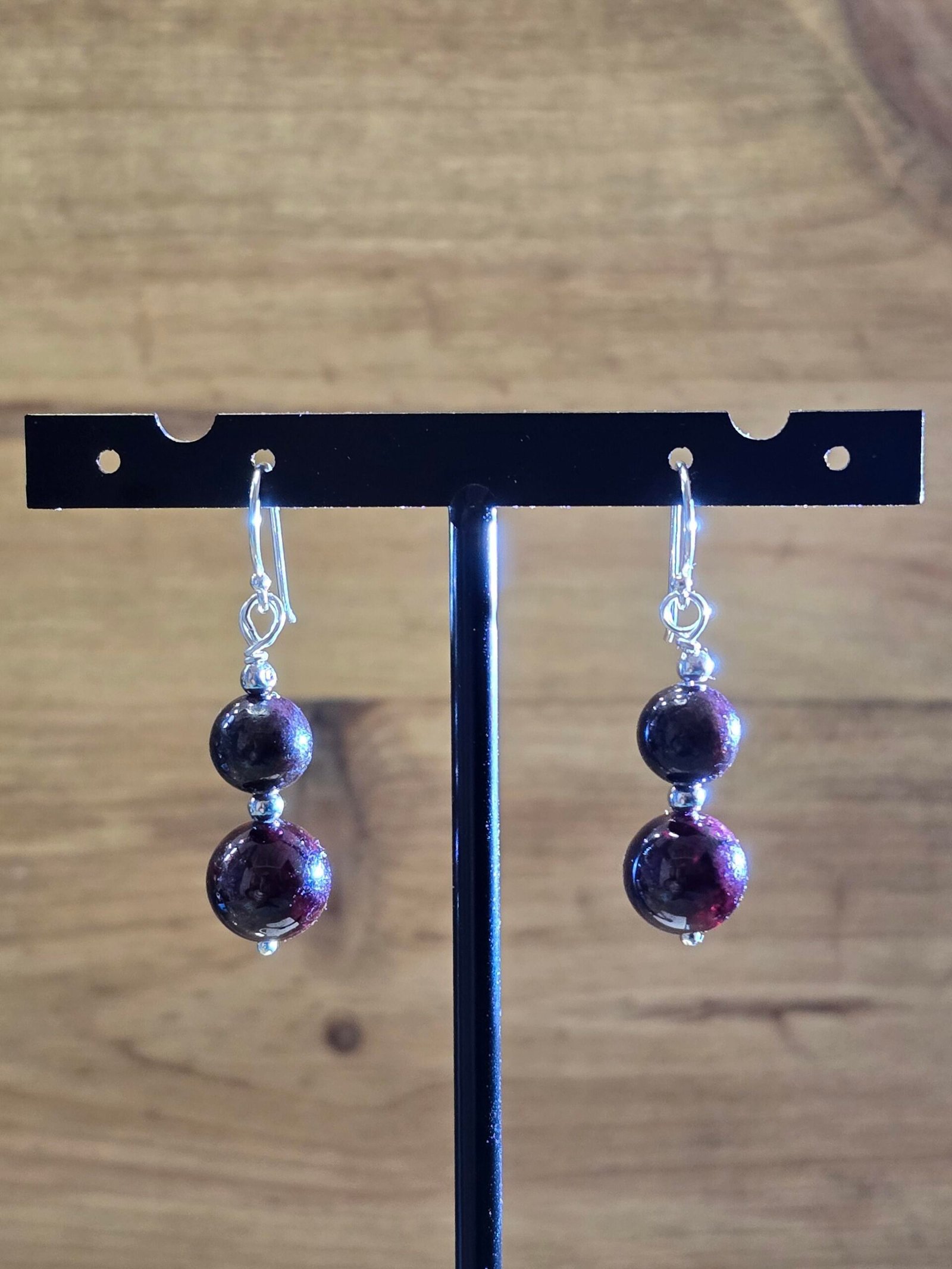 Tamaño Pendientes artesanales de granate en plata 925 (bola 8 mm y 10 mm)