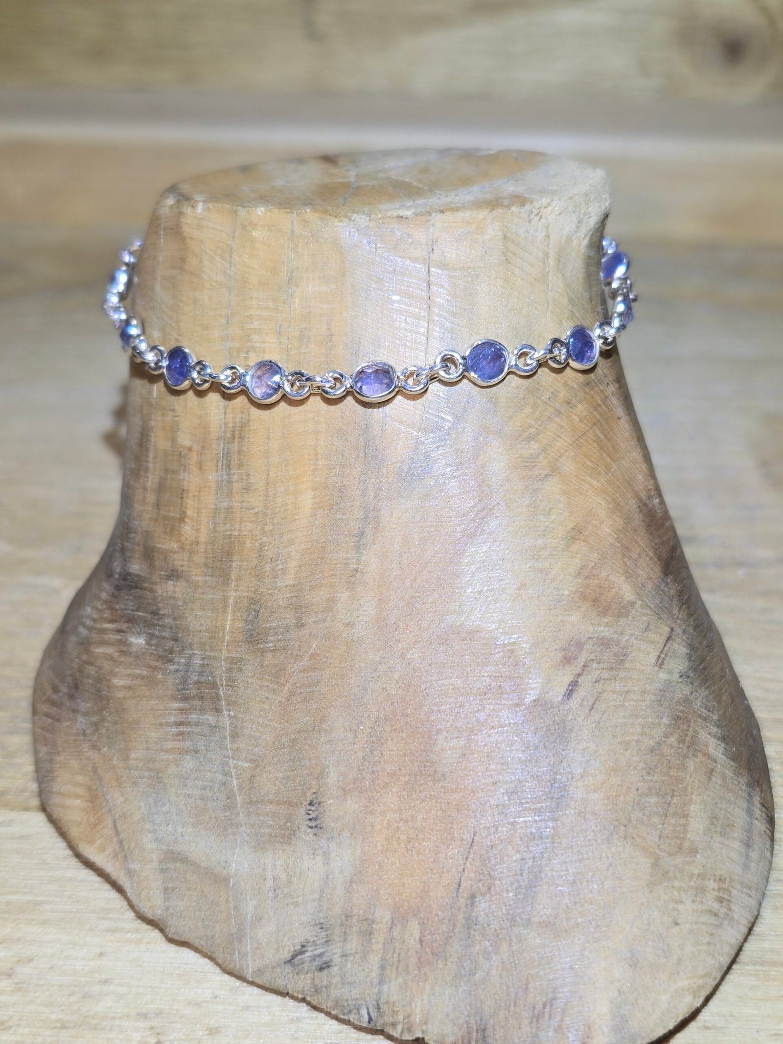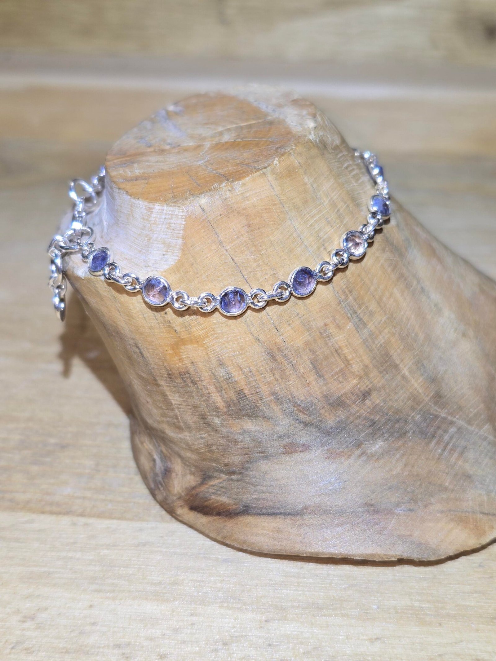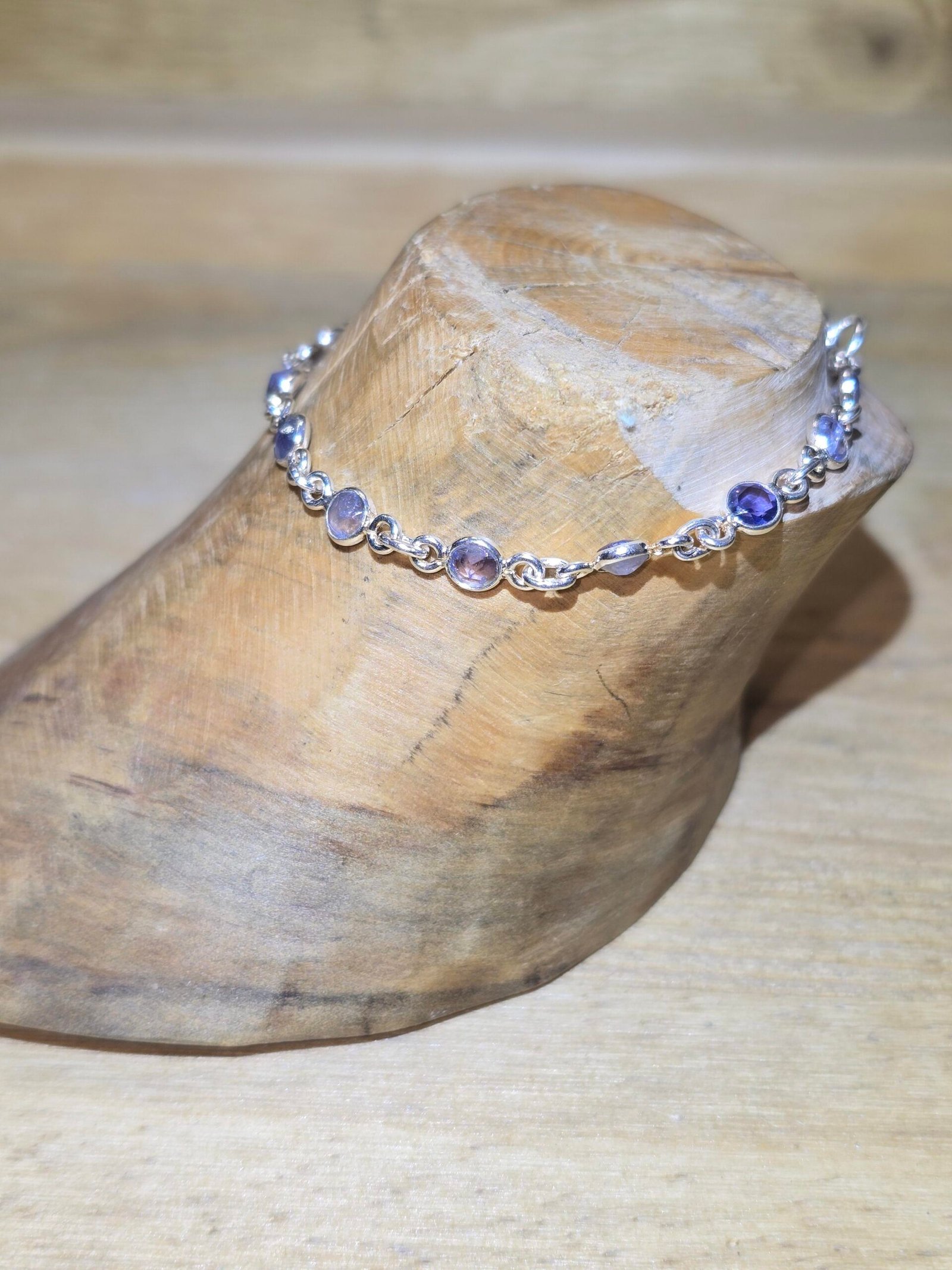 Pulsera de Iolita Natural en Plata 925 Dale un toque de elegancia mística a tu estilo con esta pulsera hecha de iolita natural , una gema conocida por su brillo azul violáceo y su energía intuitiva. Montada en plata esterlina 925 , es perfecta para usar a diario o para elevar cualquier outfit con un toque sofisticado.
