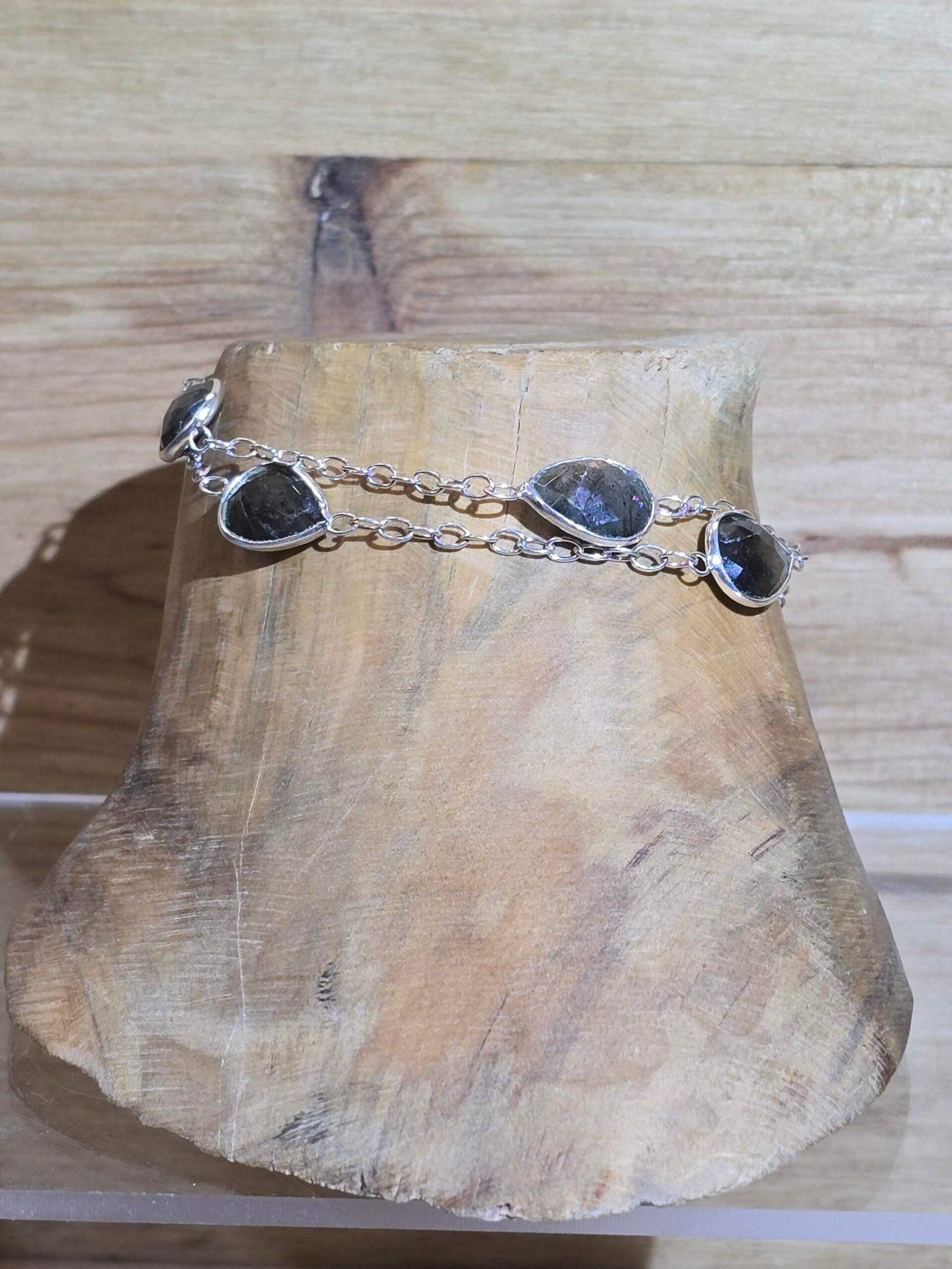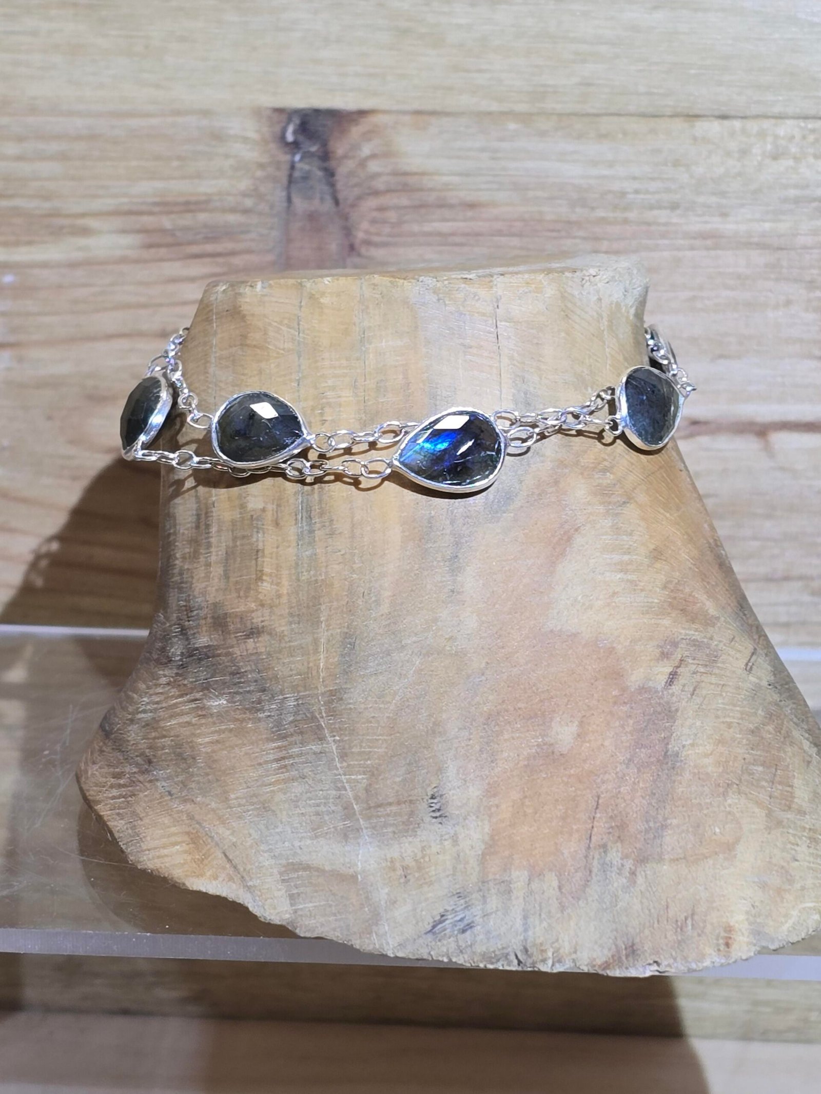 Pulsera Doble de Labradorita Facetada en Plata 925