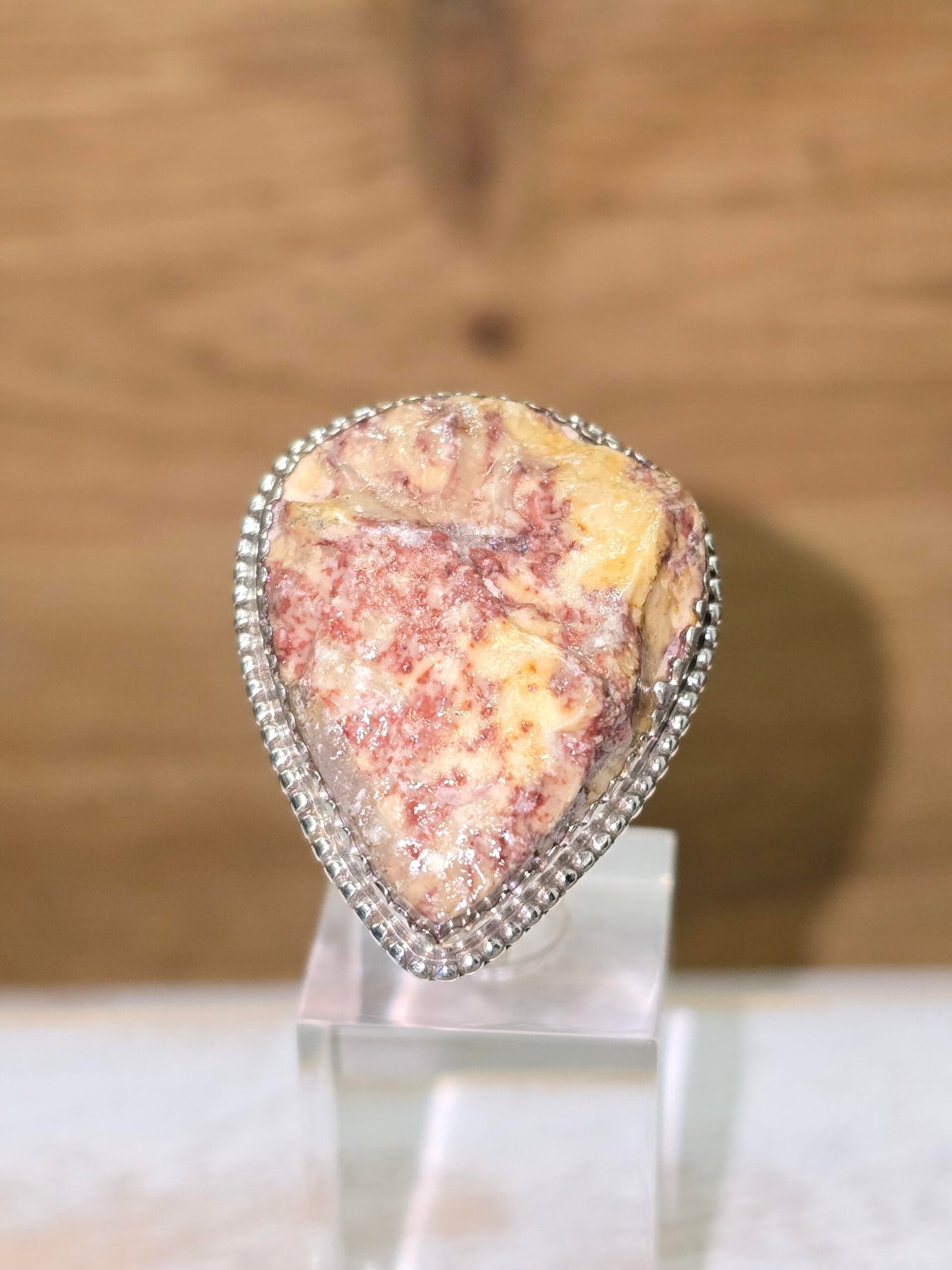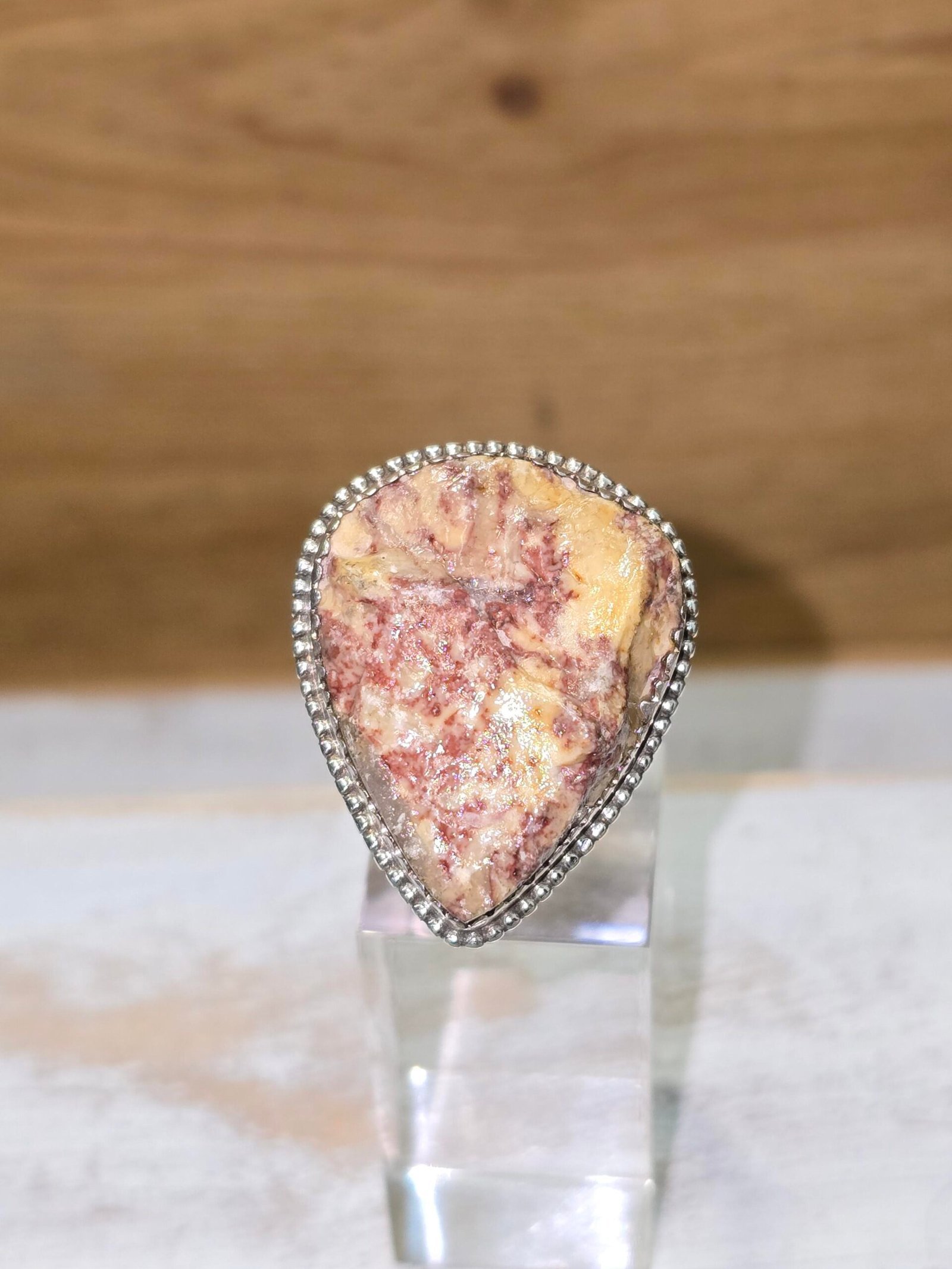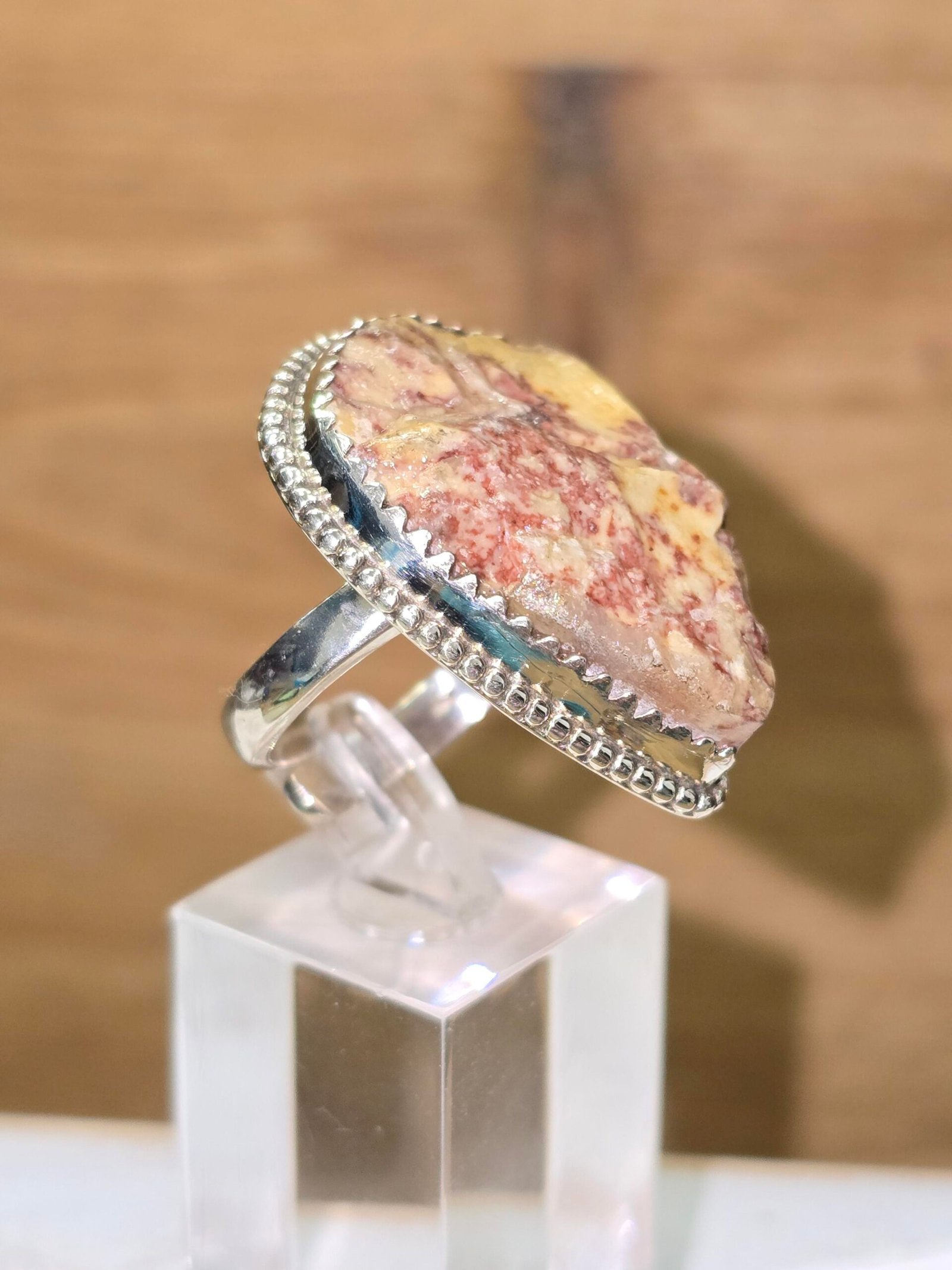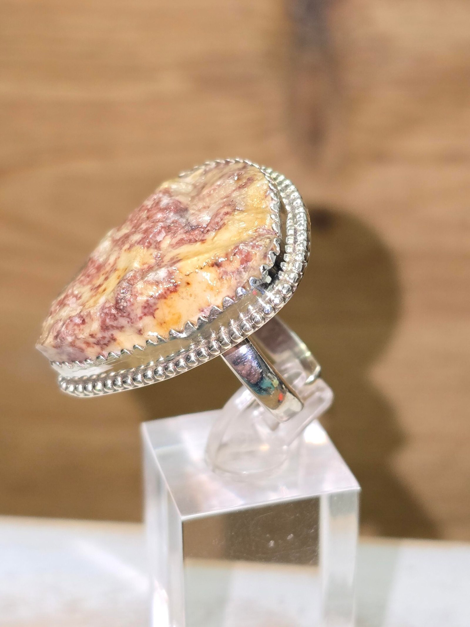 Anillo de Jaspe de Tortosa (Brocatello di Spagna) en bruto engarza plata 925