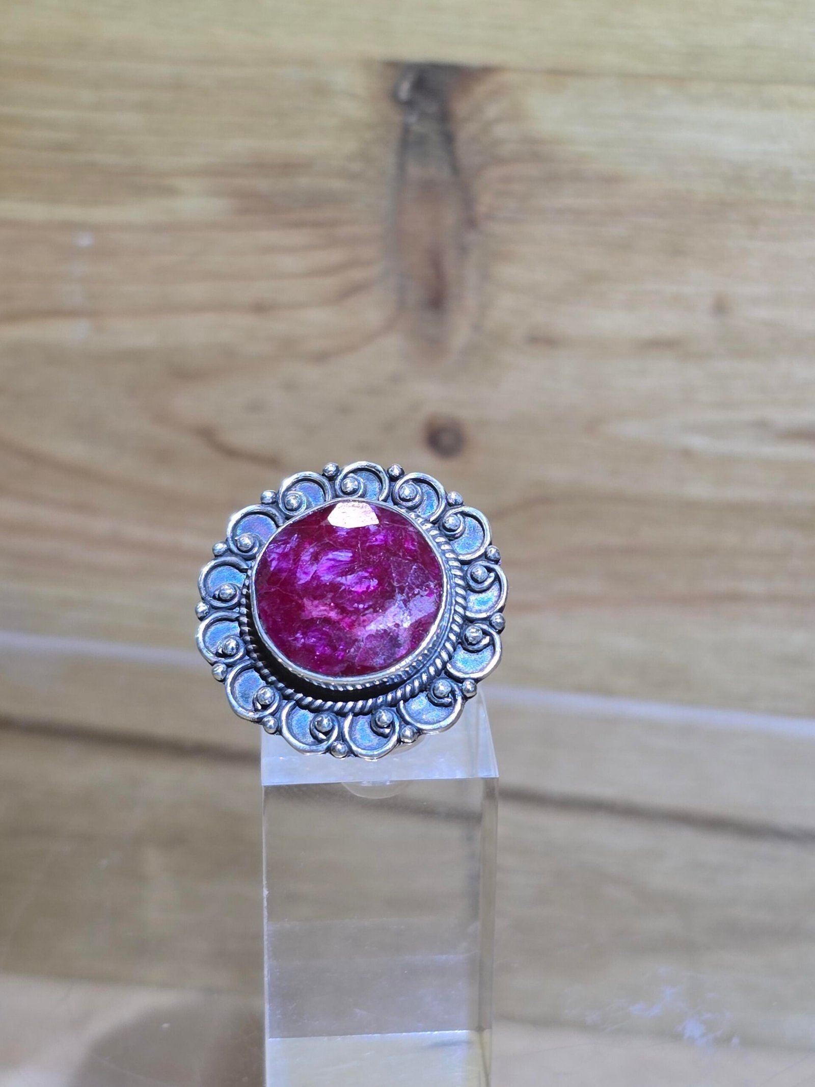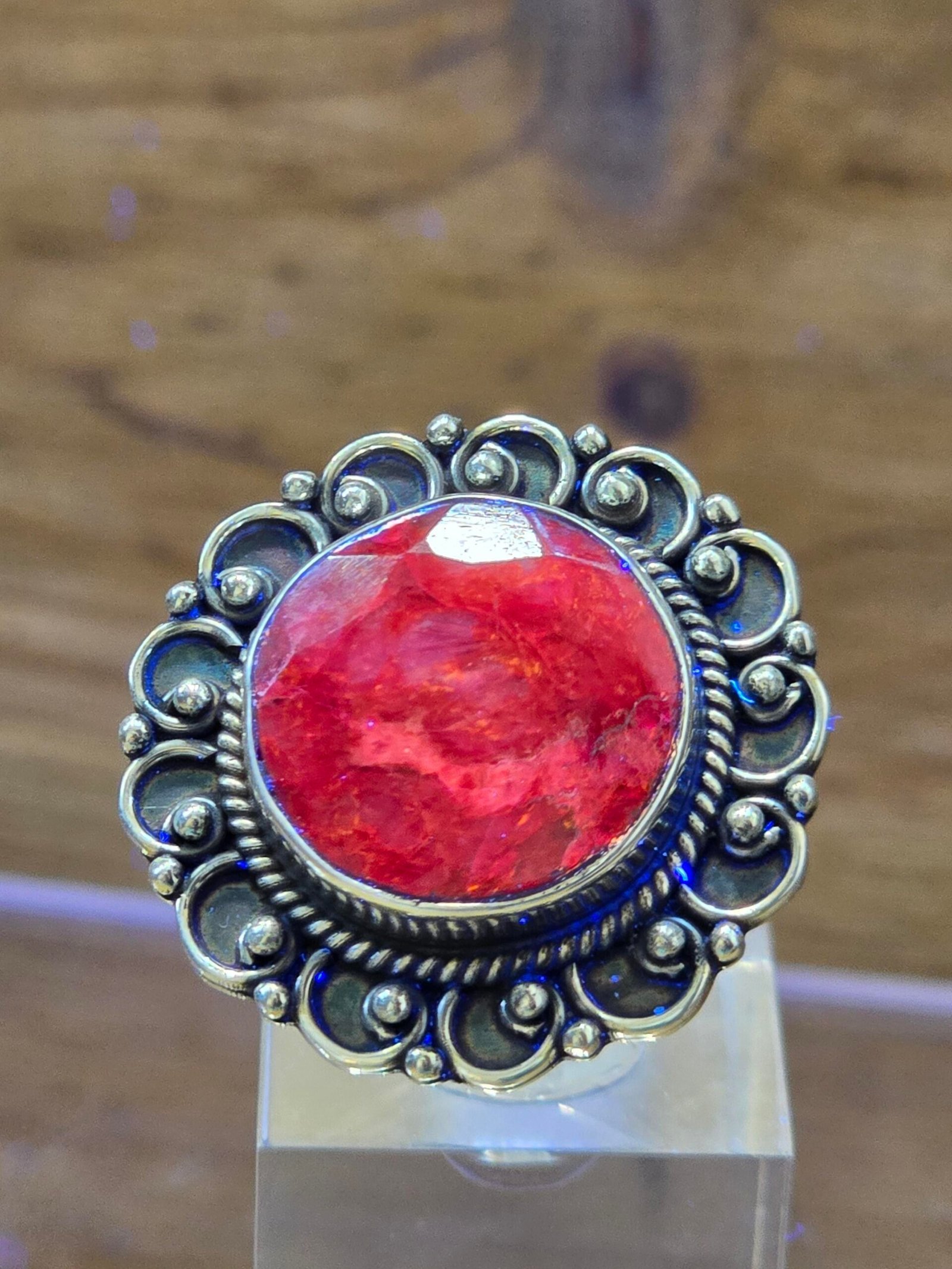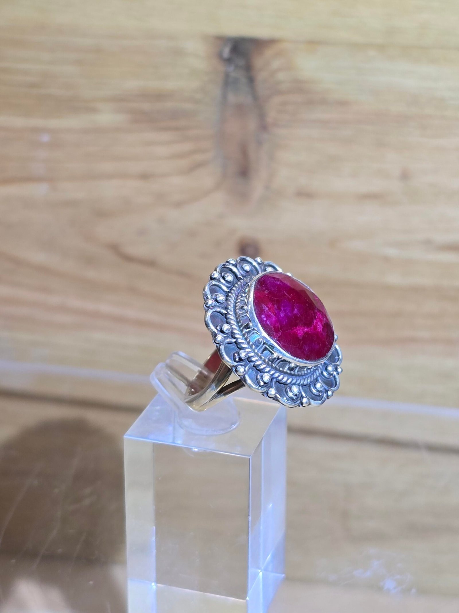 - El anillo combina rubi y plata envejecida para una combinación única. 🌟