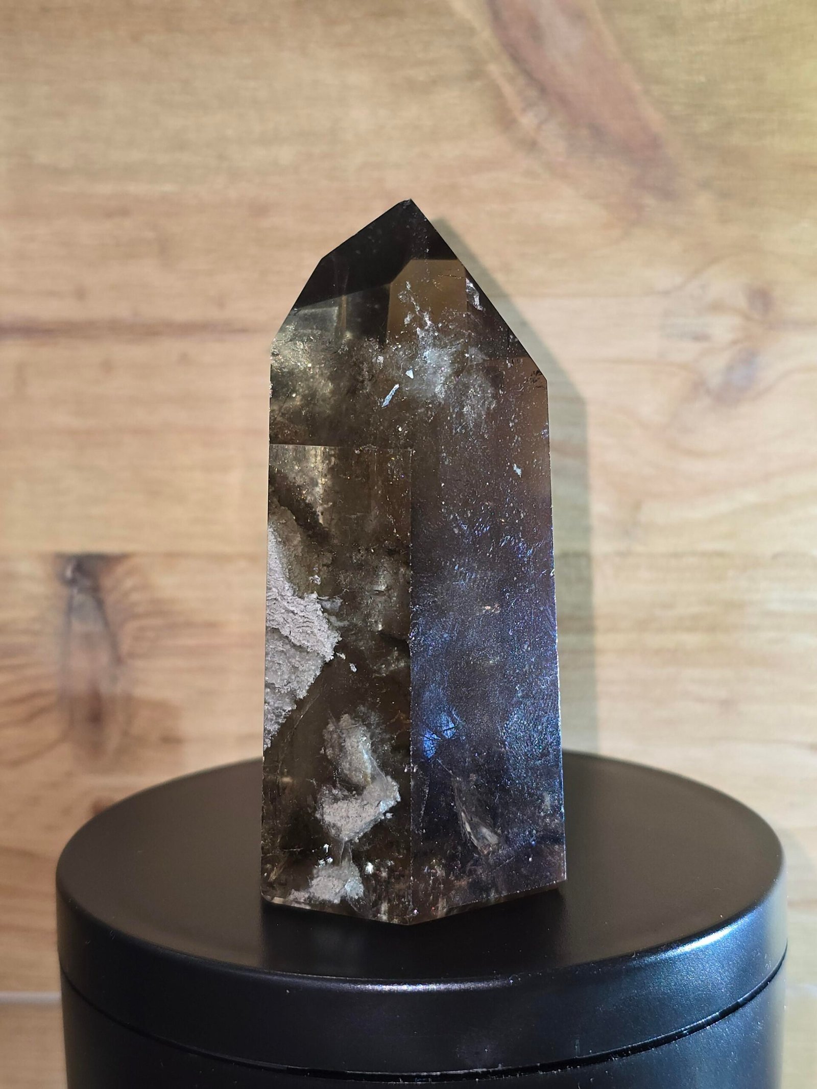 El cuarzo ahumado con lodolita es una combinación muy apreciada tanto por coleccionistas como por quienes se interesan en cristales por su origen geológico singular y su estética única. Une el color profundo del cuarzo ahumado con inclusiones minerales internas que parecen paisajes.