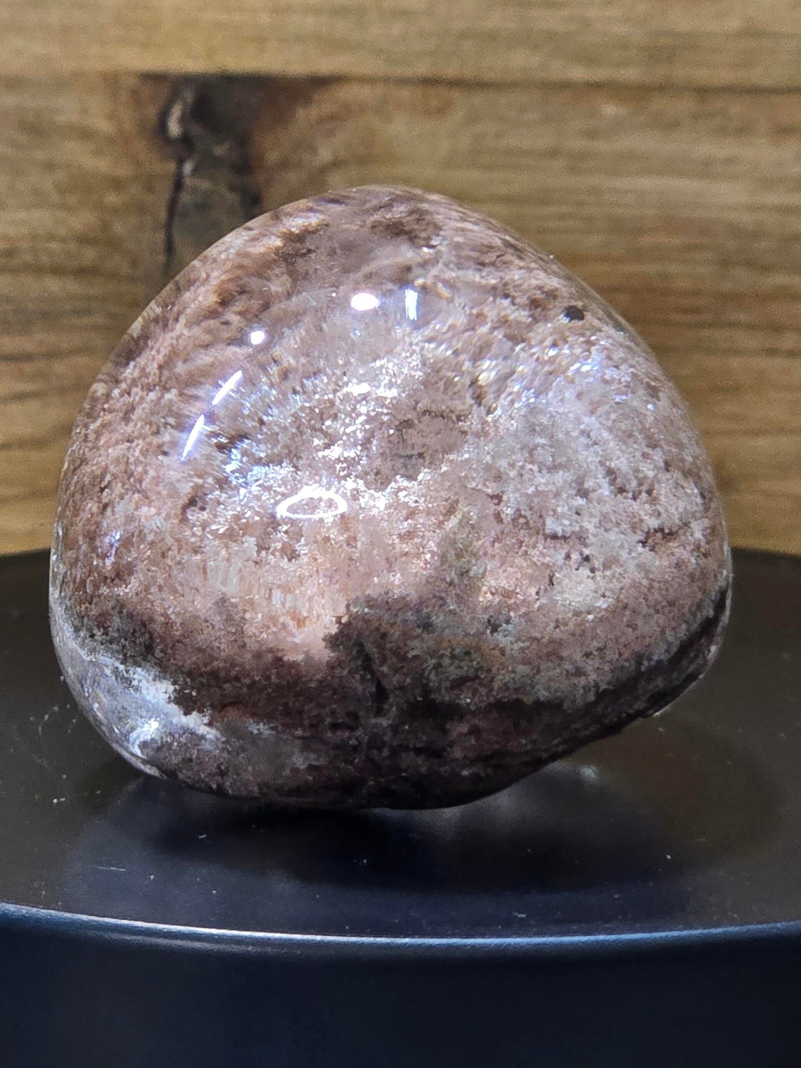 Es cuarzo (SiO₂) que contiene inclusiones minerales visibles , formadas durante distintas etapas de crecimiento del cristal. Estas inclusiones quedan atrapadas dentro del cuarzo y crean formas orgánicas, nebulosas o paisajísticas .
